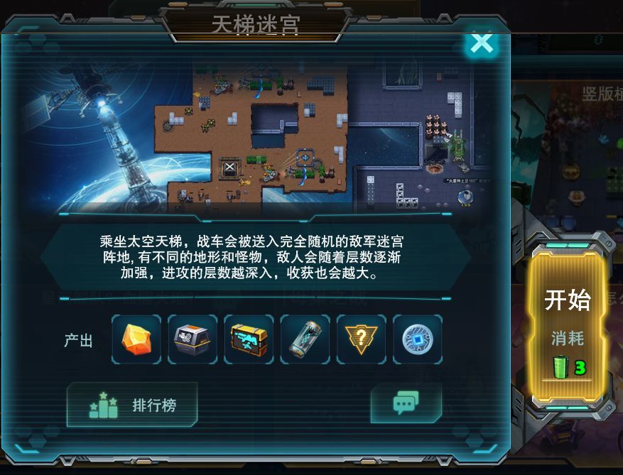 当我们乘坐太空天梯,战车会被传送至一个充满未知的敌军迷宫阵地。这里的迷宫地形复杂多样,怪物种类繁多且各具特性。更为关键的是,敌人的实力会随着层数的深入而不断增强。当然,正所谓“风险与收益并存”,进攻的层数越深,我们所能获得的收获也就越丰厚。