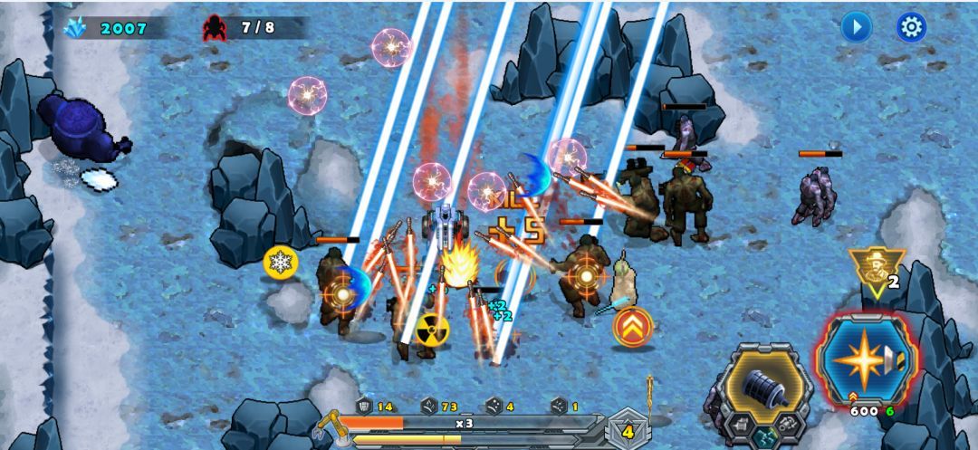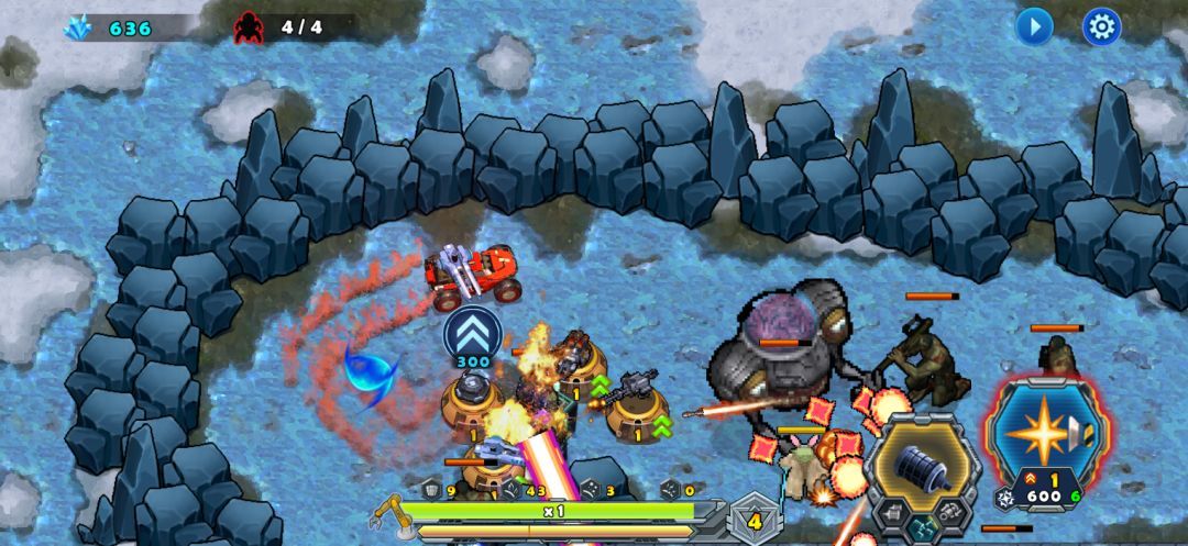 这一关对于车辆及枪塔实力达到一定水平的玩家来说,基本没有太大压力。我们只需稳扎稳打,借助远程攻击的优势,不断消耗敌人的血量即可轻松过关。