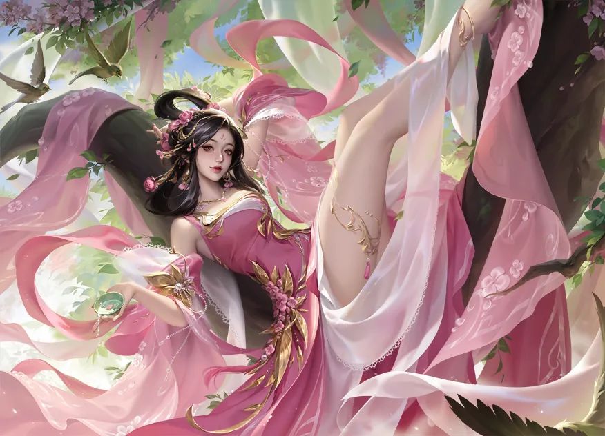 春日晴光,粉金华服轻垂