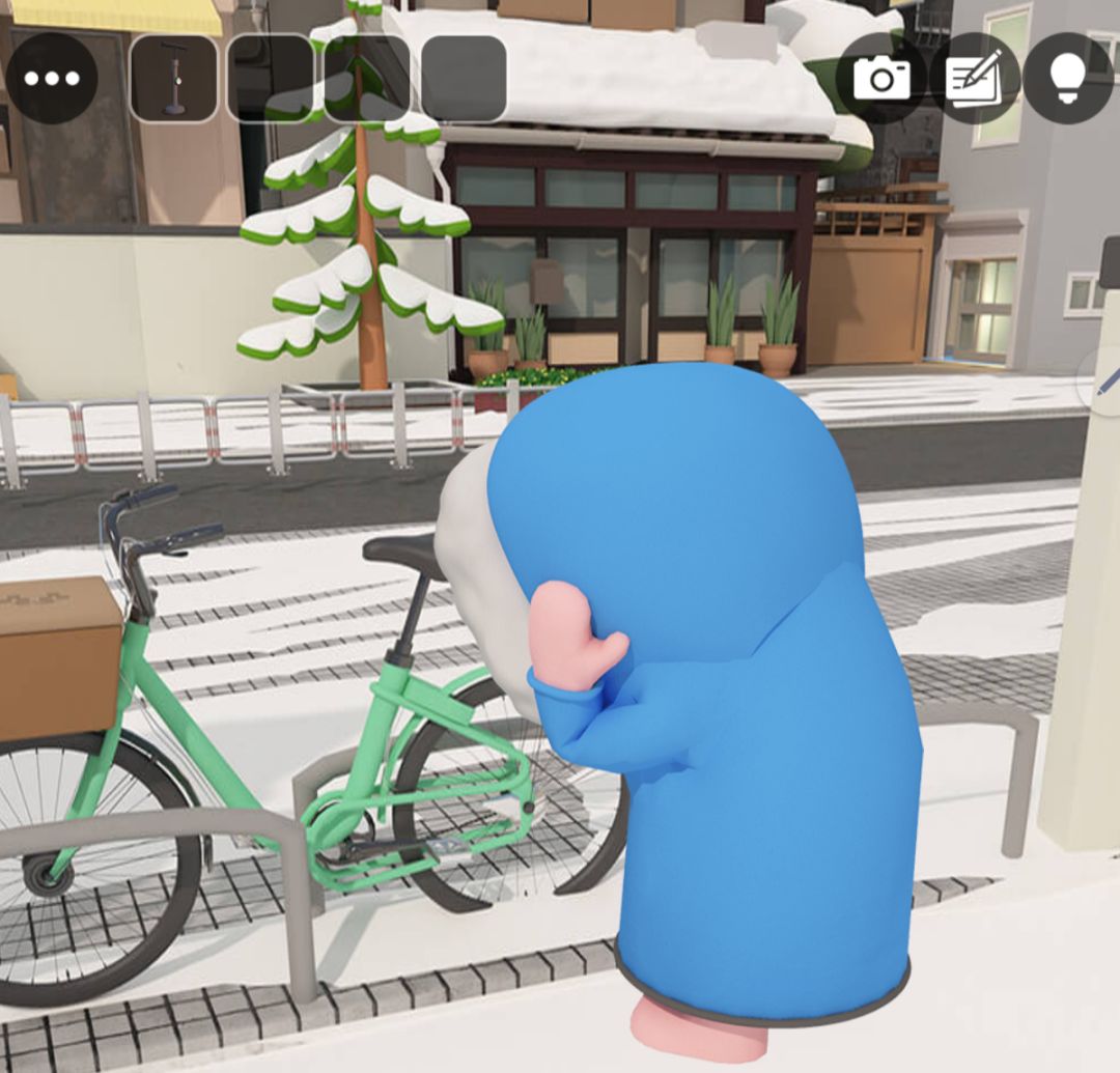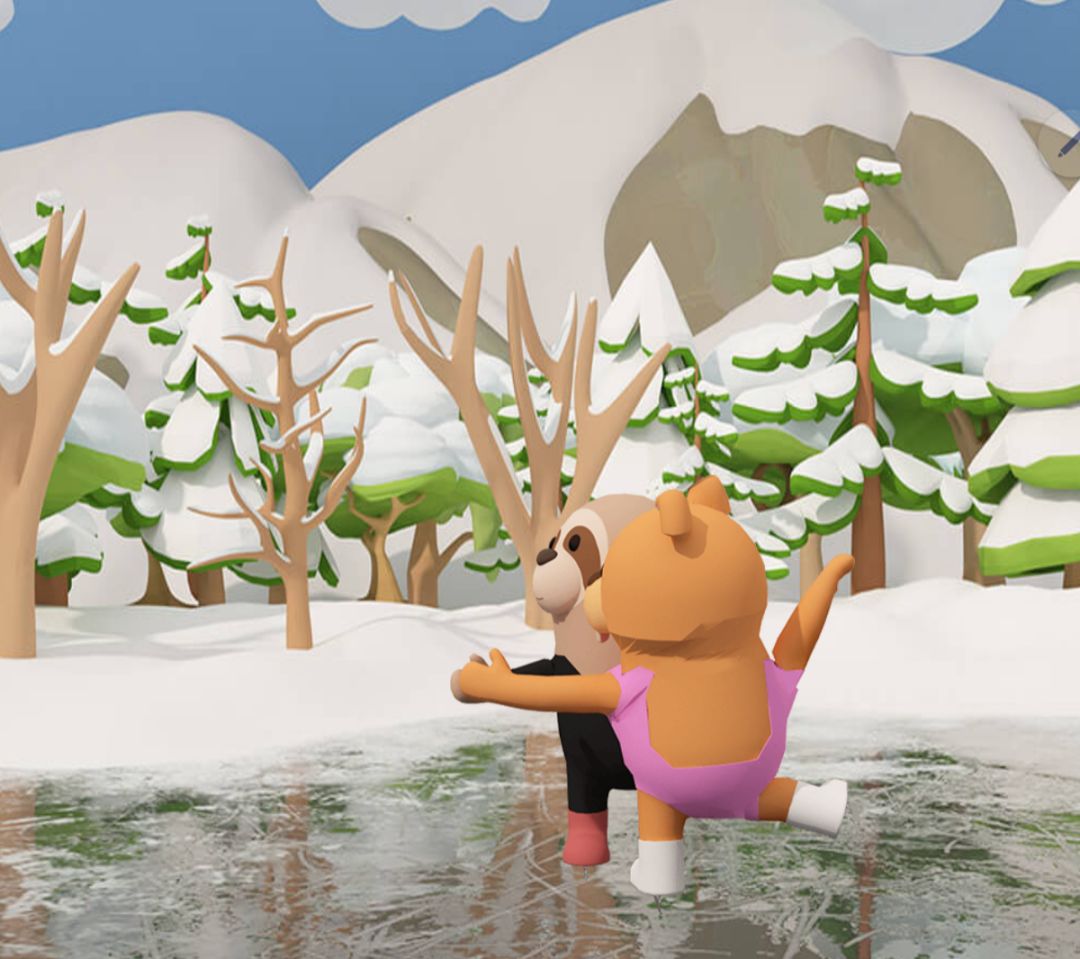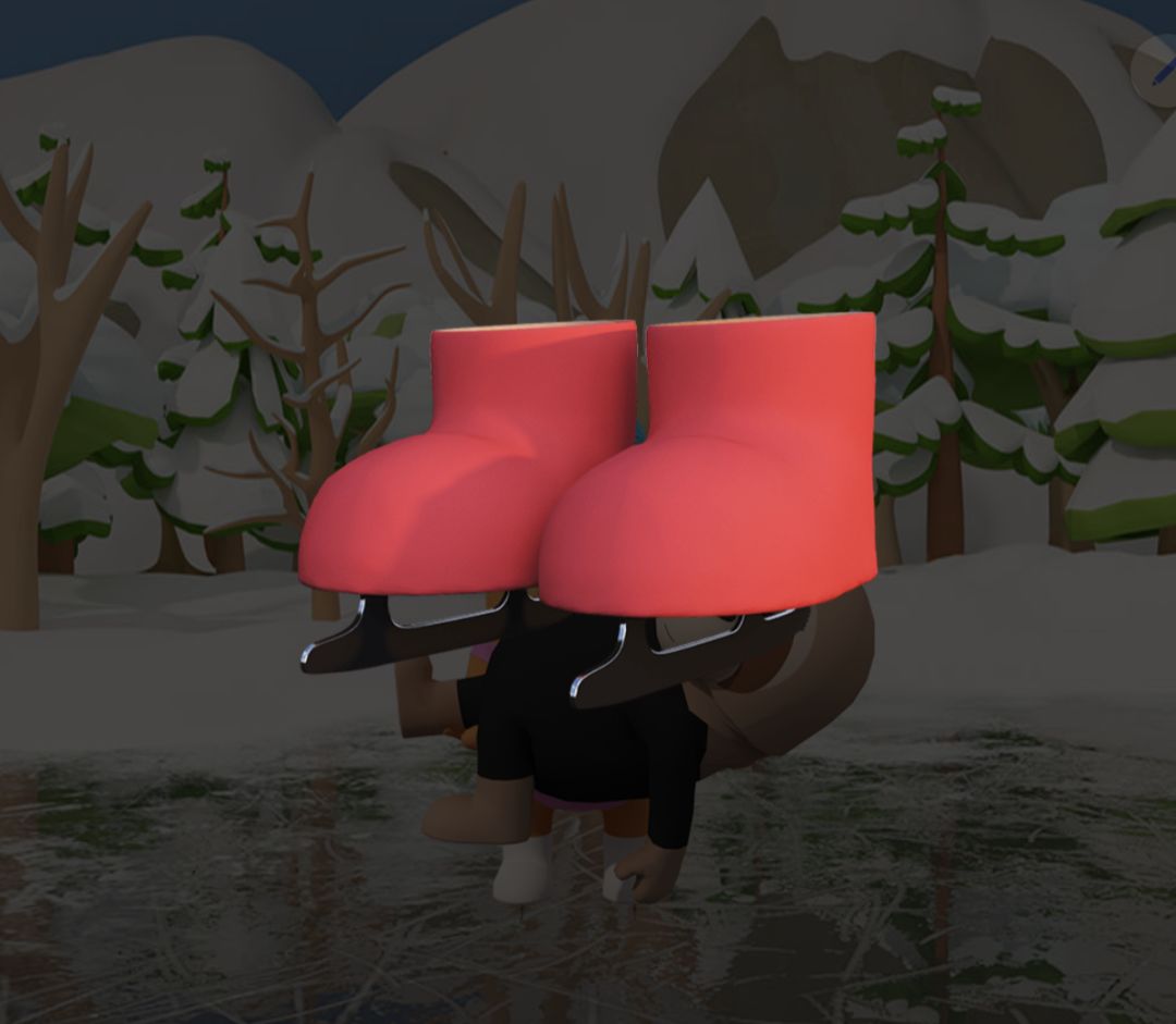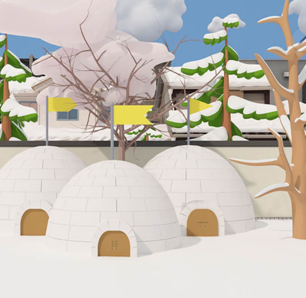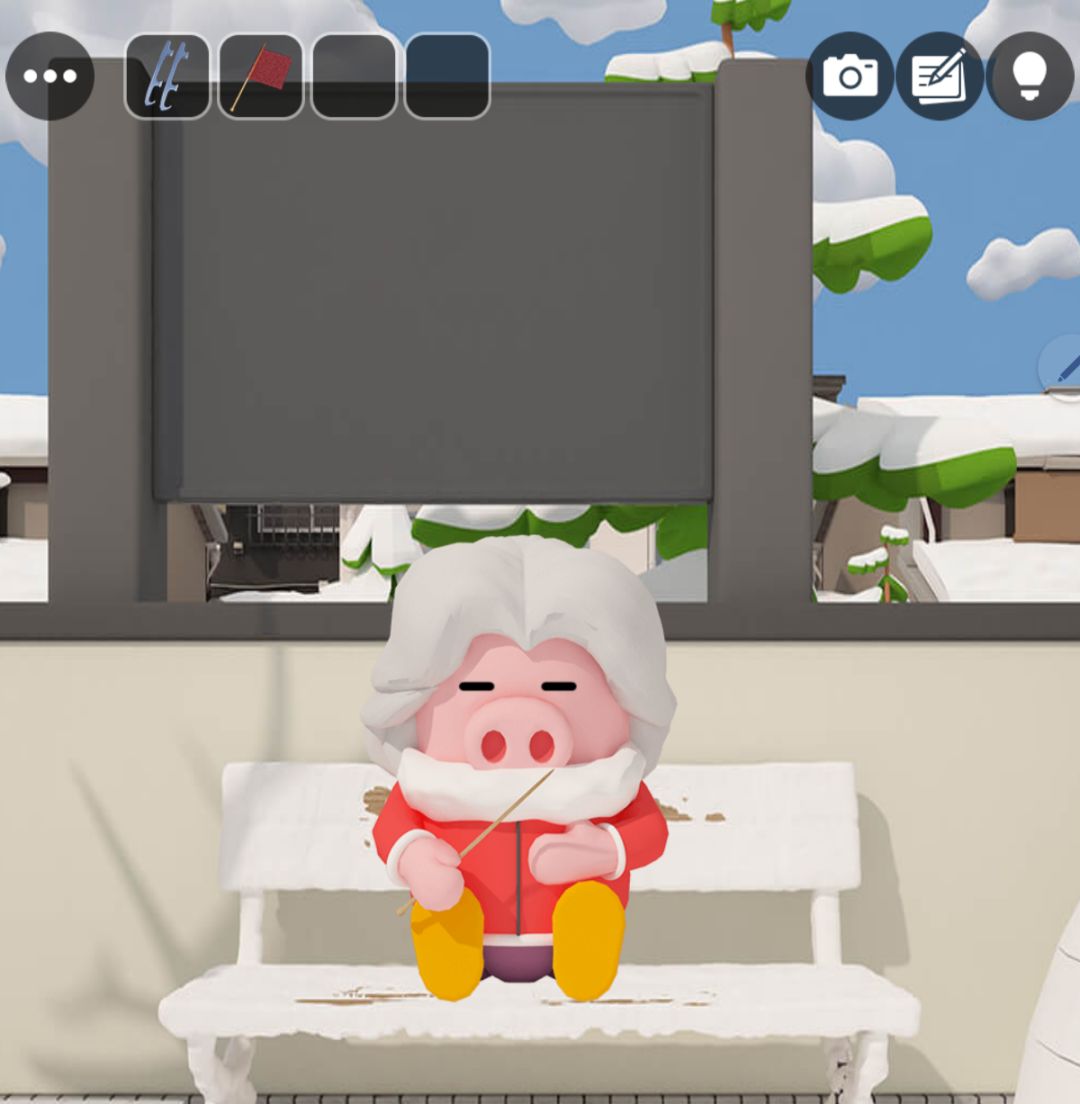 7.把滑冰鞋的两个部分组合,交给铁门内滑冰的动物,观察两个动物的移动方向以及头的朝向,可以解出外面场景的右边雪屋谜题,答案为:粉红←和黑色→,同为←,粉红→和黑色←,同为←,同为→。得到打气筒。