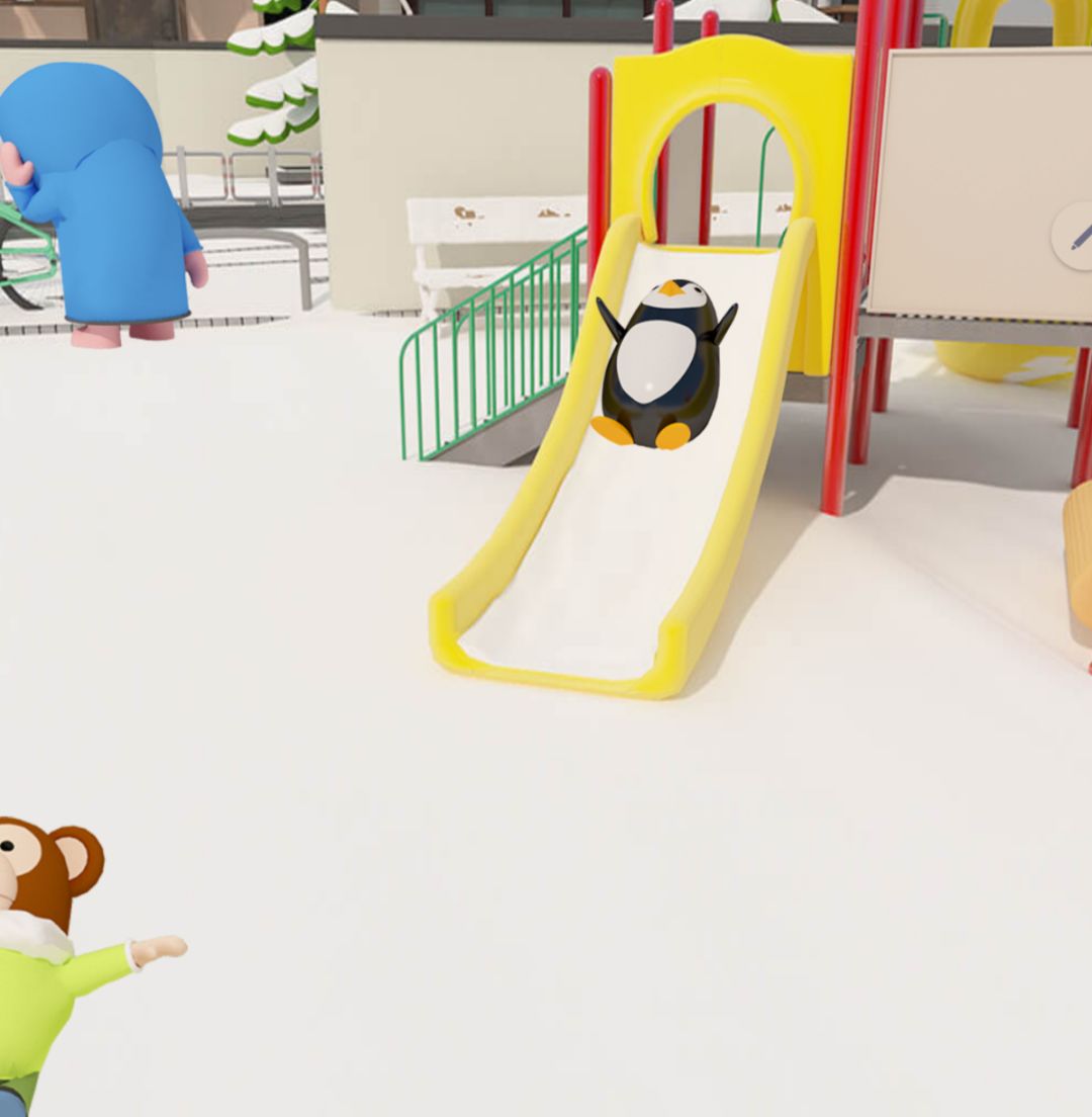 3.用铁铲把滑滑梯的雪铲走,观察动物顺序:兔子,老虎,猴子,企鹅,老虎,企鹅,