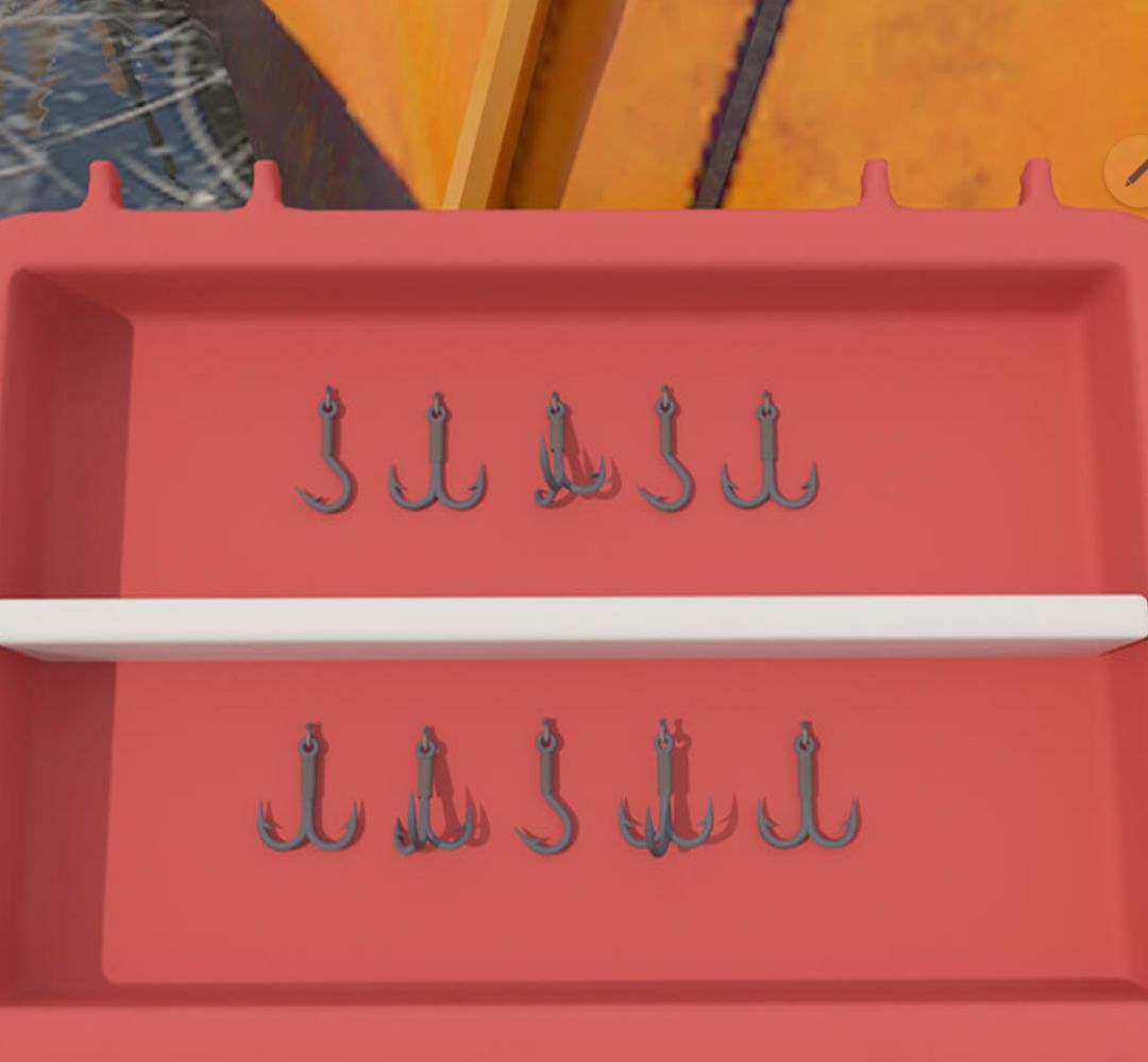 观察浮标的移动:上上下上下,再观察红箱子里的上下层鱼钩,得到鱼钩谜题答案(鱼钩数目):12112,解开饮料柜旁的垃圾桶,得到铁铲。