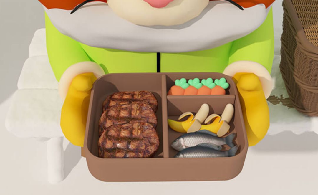 答案是:由胡萝卜,肉,香蕉,鱼,肉,鱼的顺序点击便当盒食物位置形状的图案。得到滑冰鞋的鞋刃。