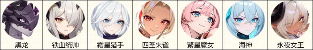 ◇ 核心输出位:四圣朱雀、永夜女王、霜星猎手