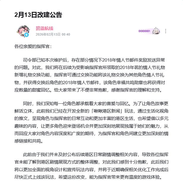 当然这个道歉内容并没有提及情书补救方案,只是预告了正在开发啾啾港区新闻新玩法,咱看完后就是感觉你游想用新实装的日常互动推文替代老角色情书,看着蛮有生活气息挺有想法的,但玩家好像不咋买账的样子,