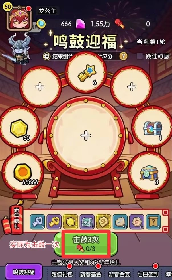 礼包码:请注意击鼓次数显示错误(2026年2月28日10:00到期)