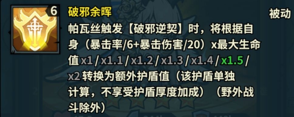 优点:多一层护盾相当于多一条生命值,可以让帕瓦丝无敌过后可以更多承伤。