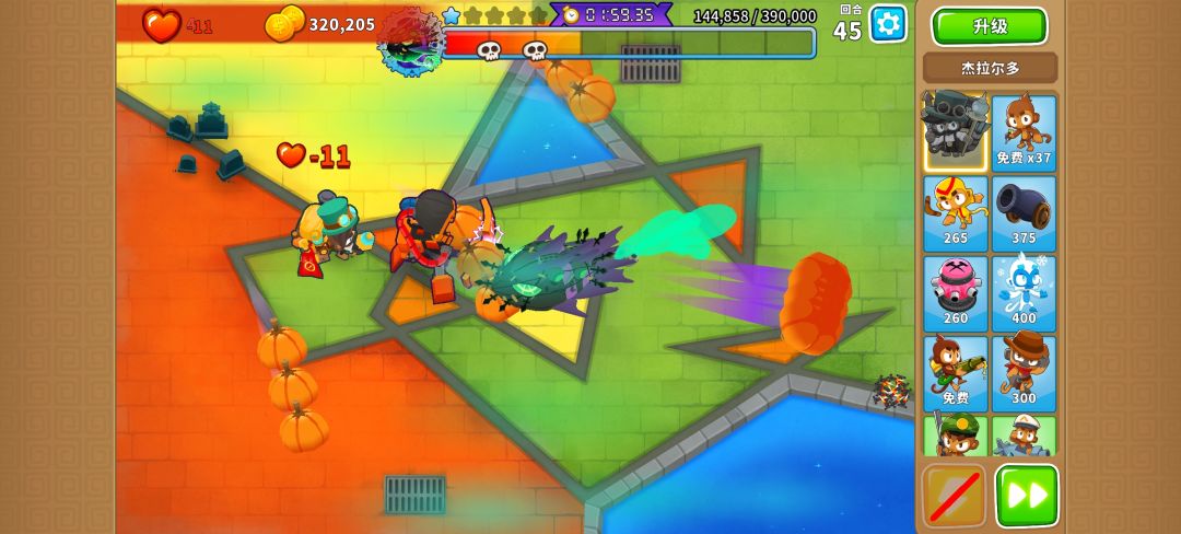 给一些小建议,第一波boss要造回旋镖模范,不然造其他猴子就会被烧死。