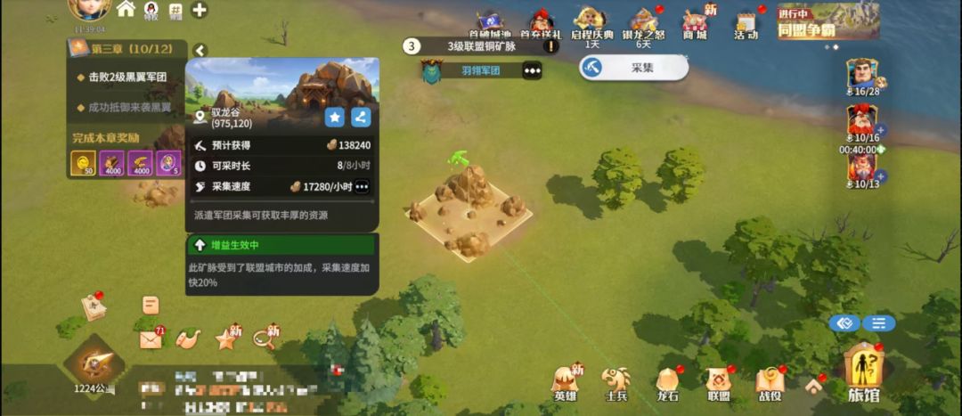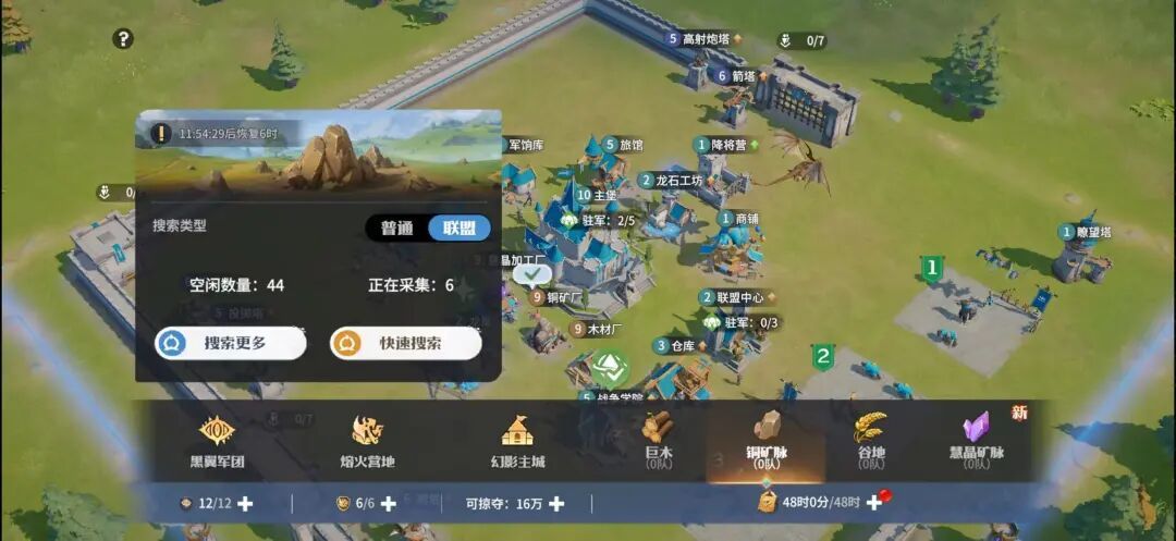 野外采集是铜木的主要来源,需掌握科学采集策略以提升效率。领主需派遣采集军团前往野外资源点采集,优先选择与队列等级匹配的高等级资源点,避免低等级队列采集高等级矿点导致效率浪费。