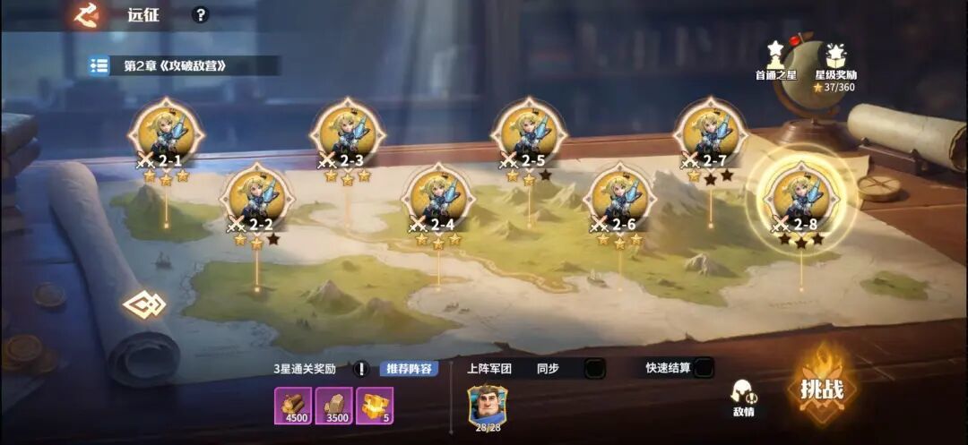 远征是游戏中必做的PVE玩法,共设15个章节,每个章节包含8个关卡,需依次通关才能解锁下一章节。该玩法以铜木、灵脉增幅器等实用资源为核心奖励,若达成三星通关条件,还能解锁额外宝箱,是新手开荒与中期发展的重要资源保障。