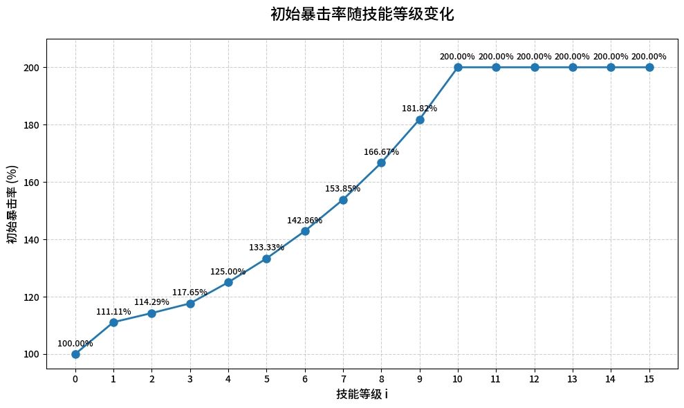 每一级达到满暴击率所需要的初始暴击率