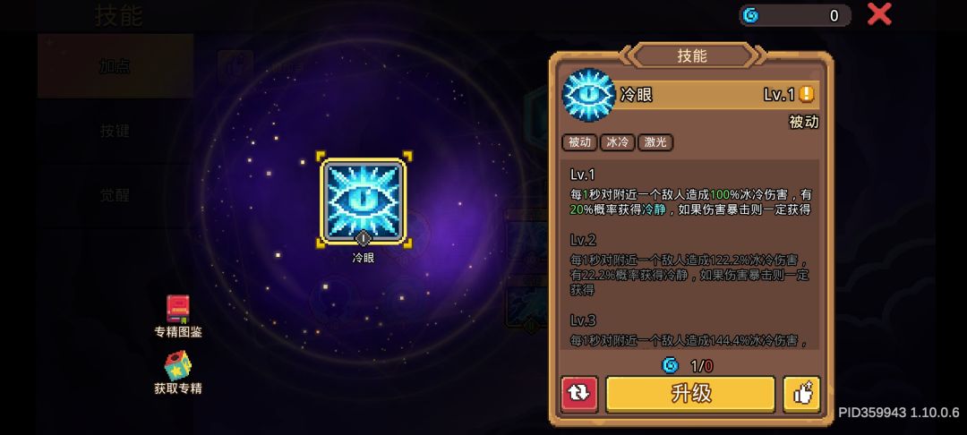 冷眼这个被动技能只需要点上一级,这个技能自身的伤害是完全可以忽略不计的,而我们后期目标都是百爆,因此你的技能等级再高也和一没有区别。