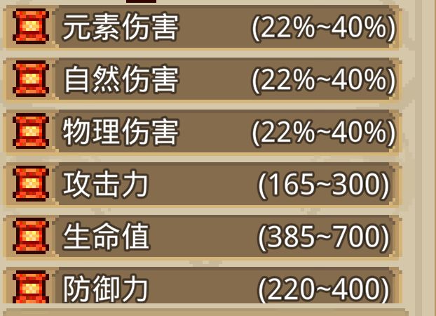 词条选择上并不固定,除了元素伤害少拿一点,全体伤害,技能伤害,攻击力加成都可以多拿一点。