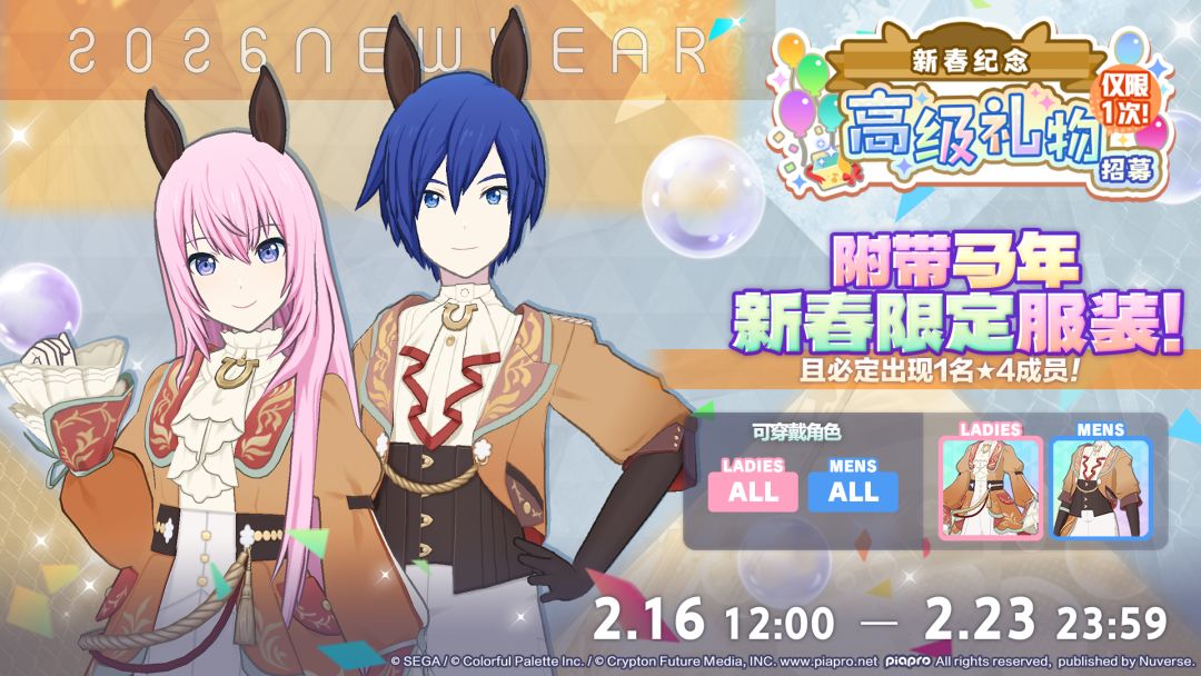 我们将于2/16 12:00起举办「[新春纪念]高级礼物招募」!