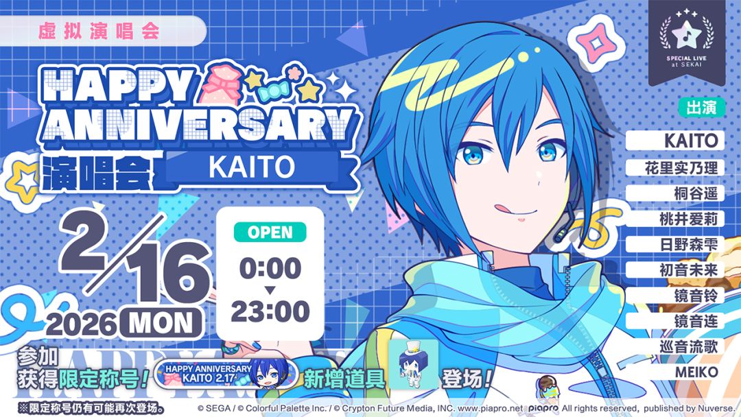 我们将于2/16(一)举办「HAPPY ANNIVERSARY 演唱会 KAITO 2025」。