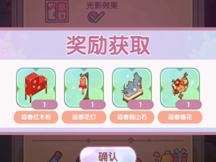 迎春红木柜×1、迎春花灯×1、迎春假山石×1、迎春墙画×1