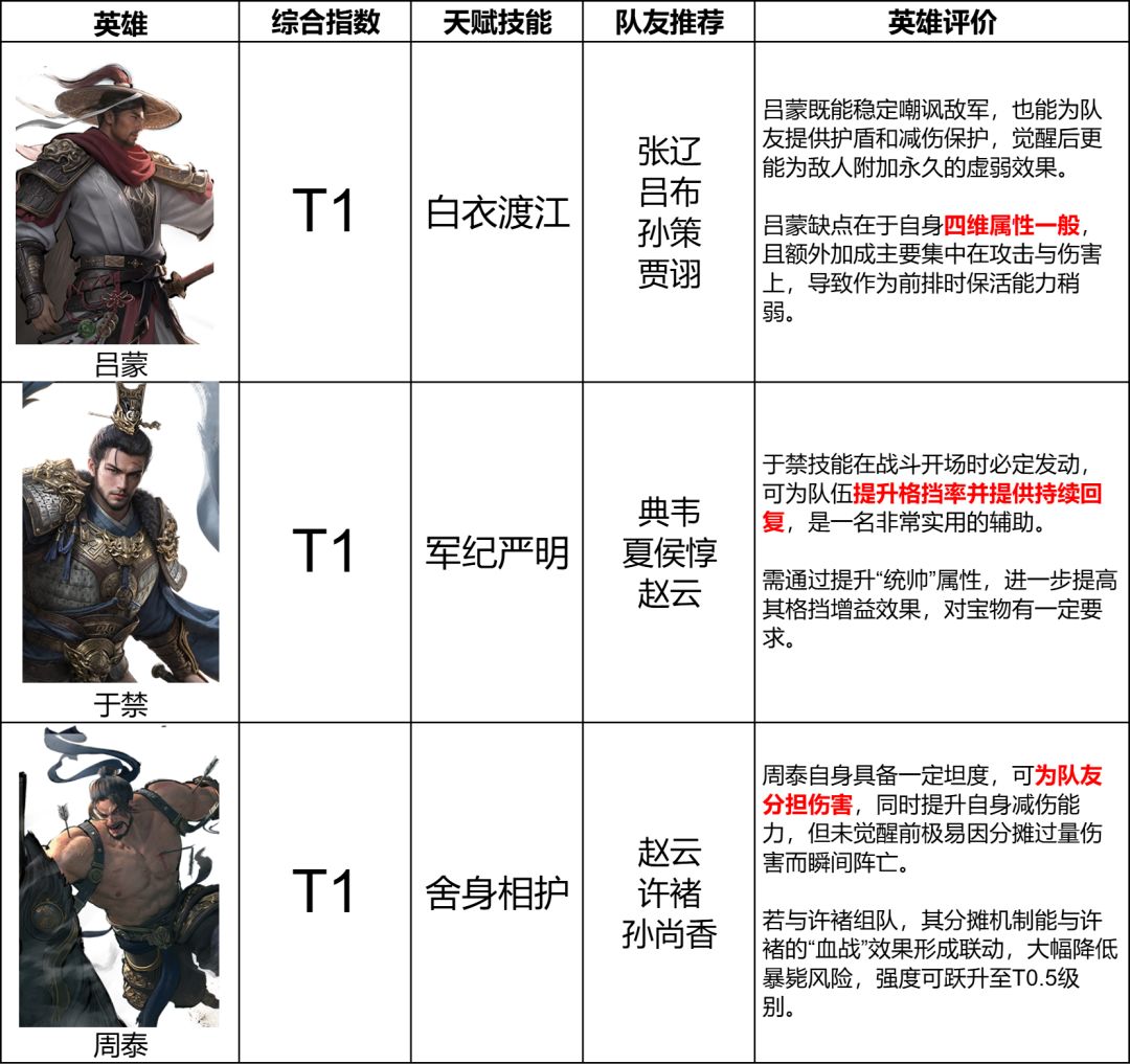 《三国:天下归心》灵感测试坦克英雄排行榜