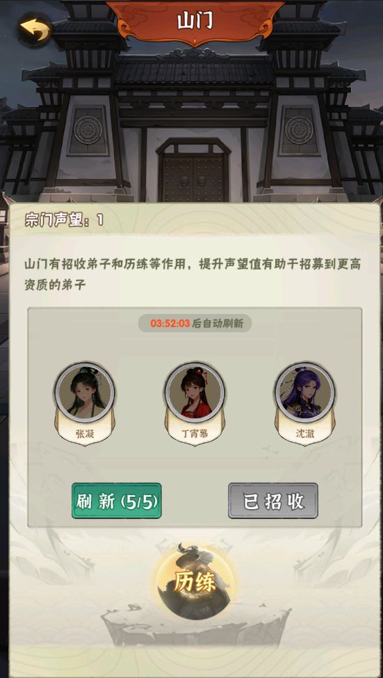 招募资质与宗门声望直接挂钩,声望越高,招募到高资质弟子的概率越大;反之则难以获得优质弟子。
