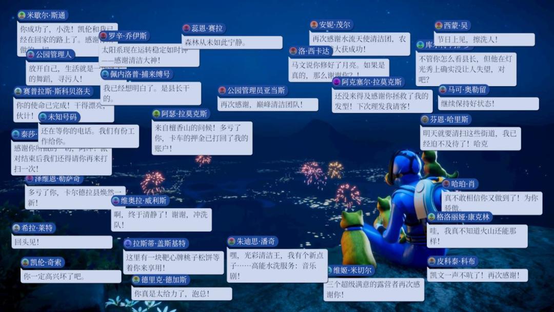 不过,硬要说的话,本作也还是有一些缺点的,比如根据清洁进度解锁的镇民的对话会阅后即焚,并不能以任何一种手段再次查看,错过了就是错过了;又比如联机体验并不十分稳定,与其买两份游戏在线联机,还不如通过各种工具本地分屏;以及游戏目前并不能修改键位(只能选择现代与经典两种模式),不太习惯这套键位的话可能需要一定的适应时间——