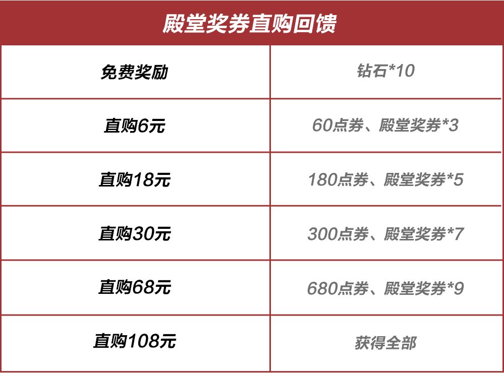 殿堂奖券直购回馈