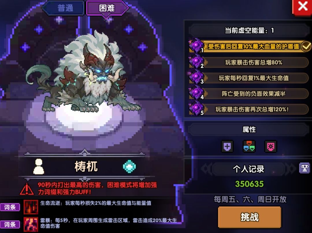 ③每秒获得3%全属性伤害,最多90层,死亡清零(复活后有惩罚机制,10秒内全属性伤减少50%,4格虚空能量可让惩罚机制减半)
