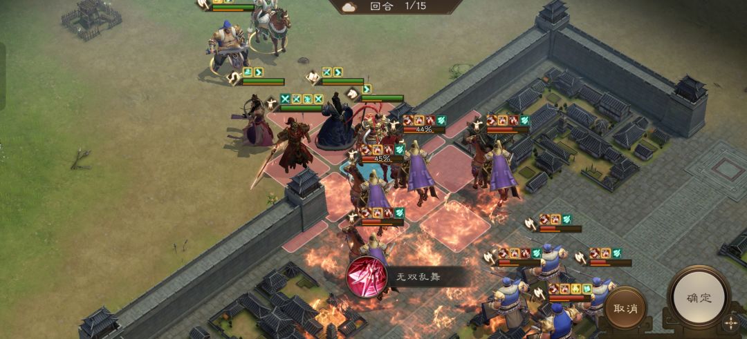 吕布前进到上图位置开技能无双乱舞攻击敌人,