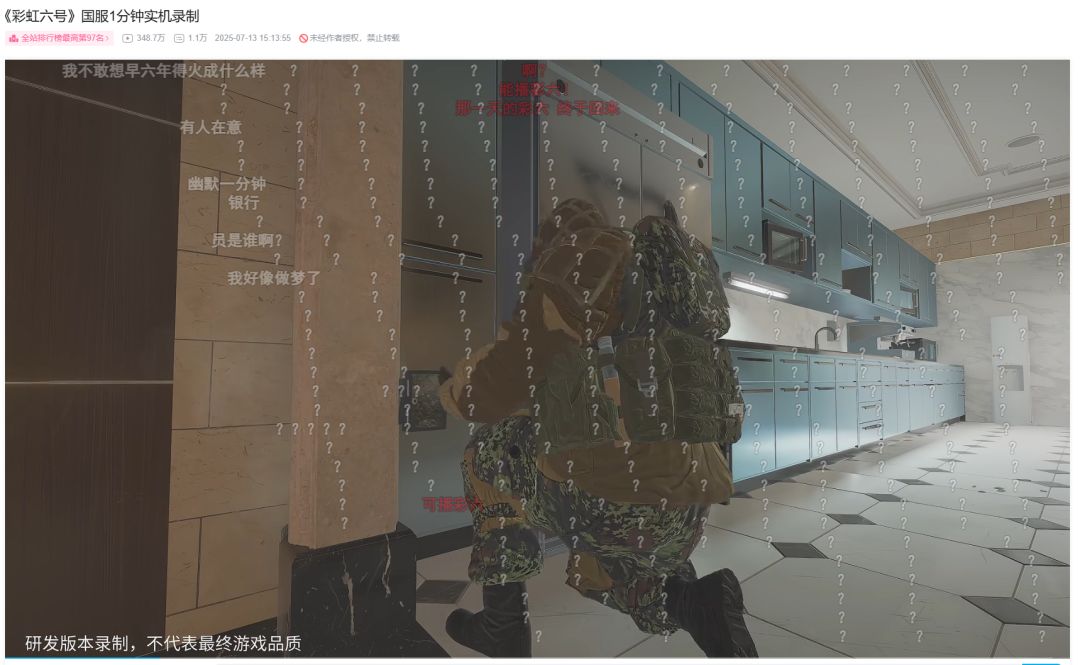 包括在国内各大社交平台上,游戏的热度也很高。比如说国服的首个官方实机视频发布即斩获300万播放量,冲上B站热搜第9;国服过审的微博话题阅读量破5000万,讨论量超10万;而在泛用户更集中的抖音,《彩虹六号》相关话题播放量合计已超10亿。