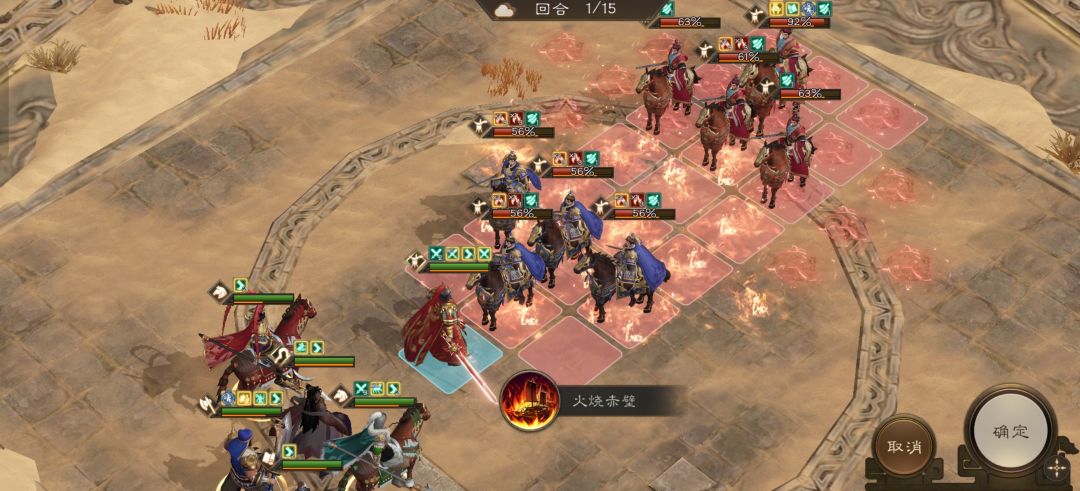 周瑜开怒技火烧赤壁攻击全场敌人后用再动马向左侧移动两步。