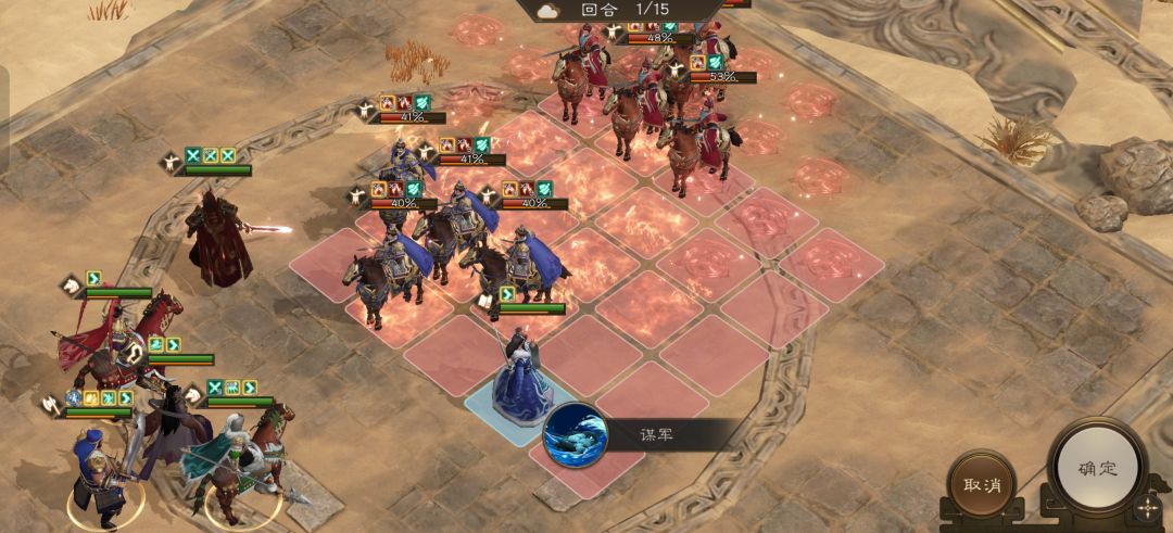 郭嘉前进到上图位置开技能谋军攻击敌人。