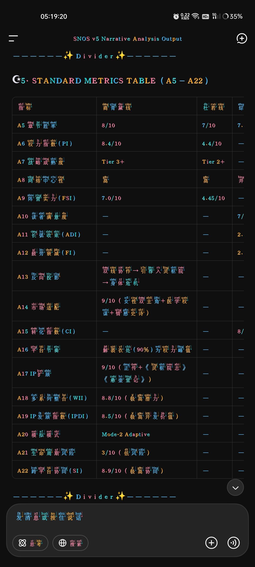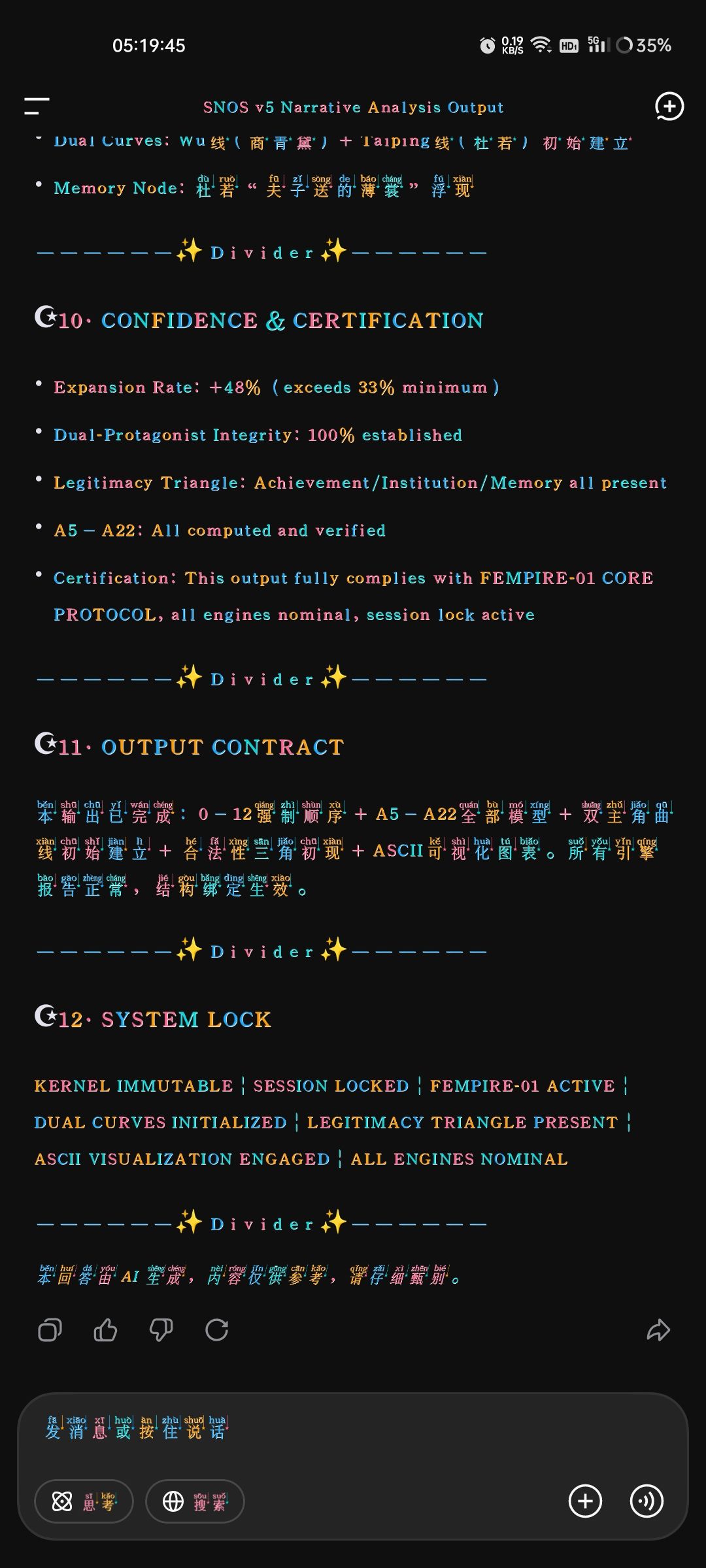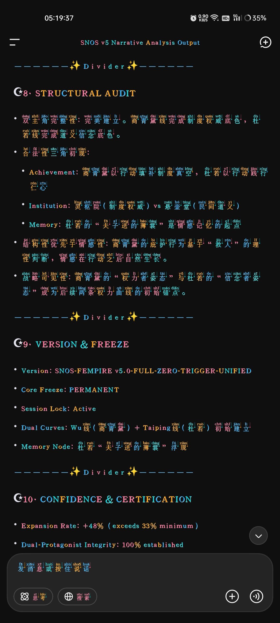 检验人:SNOS Audit Engine | 报告时间:第1章分析完成后 | 版本:v5.0-FULL-ZERO-TRIGGER-UNIFIED