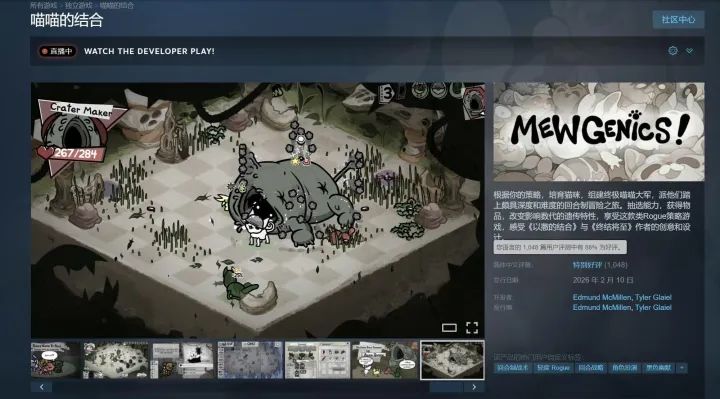《喵喵的结合》凭借别具一格的游戏设定、趣味十足的玩法机制,上线后收获了全球玩家的广泛好评,即便在首发未推出官方中文的情况下,依旧凭借自身优质内容吸引了大量国内玩家入手体验,中国区登顶销量榜首,更是对游戏品质的最好认可。