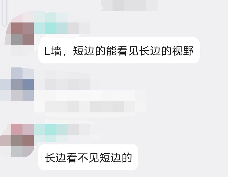 再简洁一点就是如上图,若b上方或下方有一堵墙L,b可以肘击a,a不可肘击b,再解释不明白我也没招,如果你实在不知道是否形成了L字形,可以关闭透视,弱观察不到哈基狼跑路就对了