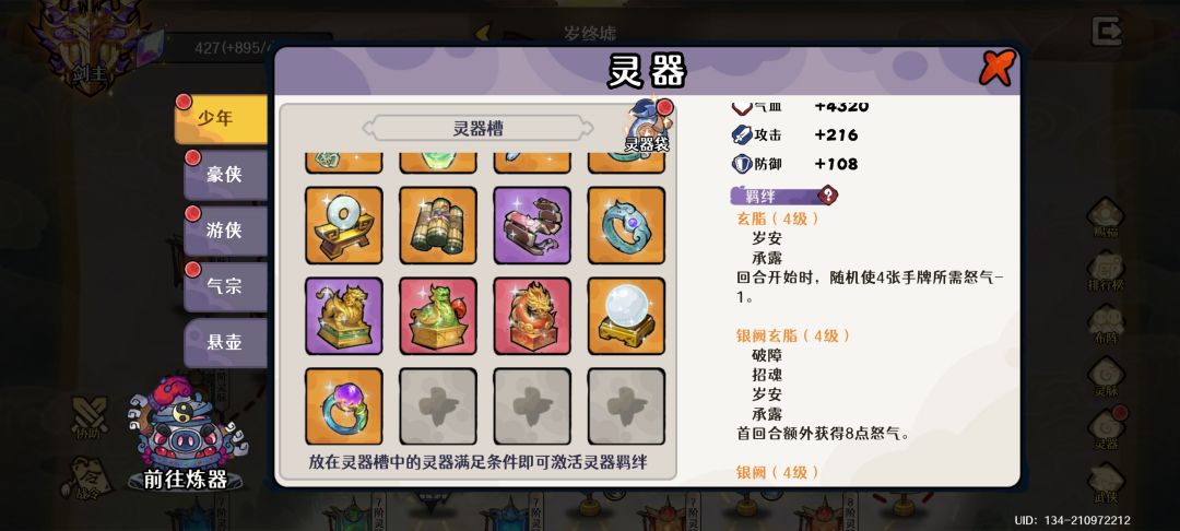 而在新玩法上古遗迹增加了灵器,灵器类似古器,带额外类似赐福效果和数值提升。