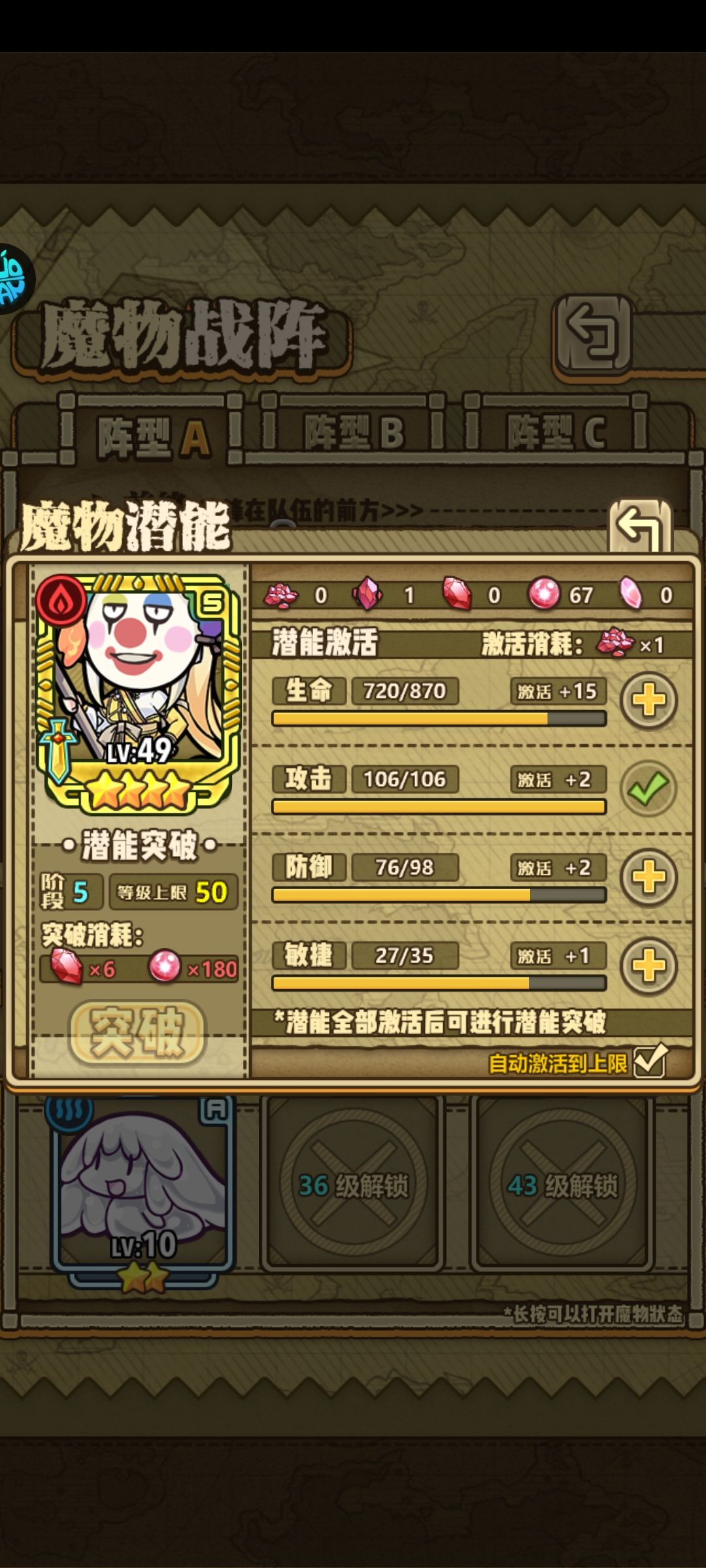 一马当先,先养一马,硬刷小碎片终于突破40级了,然后这个矿坑需要每天打通到坑底吗?今天掉了67个珠子,看样子还要打2两天才能有突破50级的珠子材料,碎片材料好像30个体力药刷不够啊