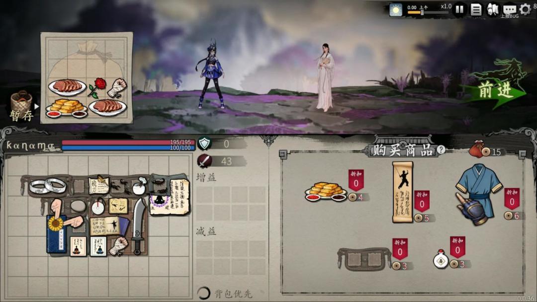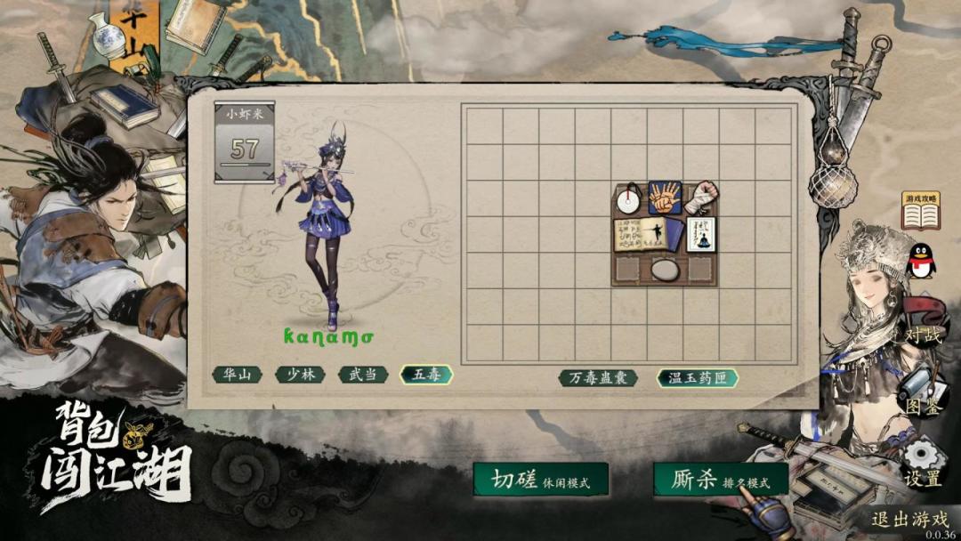 这是一款武侠题材的背包管理与爬塔相结合,又带有异步对战的游戏,玩家需要在有限的背包空间中组合各种武学招数、内功、饰品、武器啥的,通过搭配组成最佳排列布置,将武学招式的效果增发挥到最大化,然后在对战暴揍对手。
