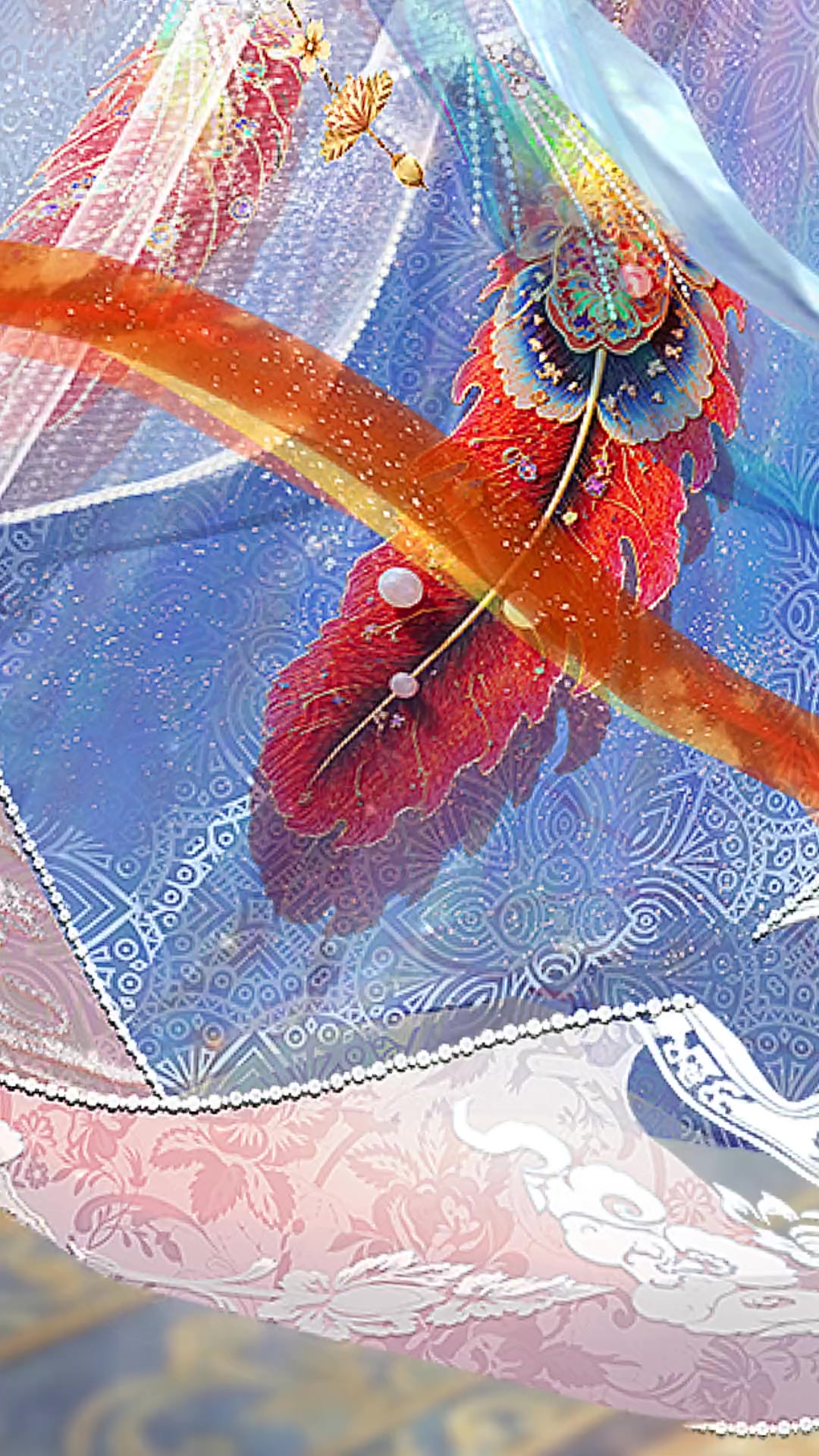 华裳轻扬,绣纹流转晕开万千色彩,