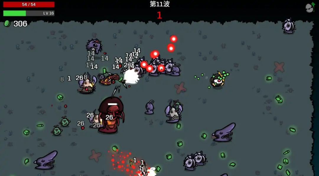 当你能成功活过第一个精英/怪潮波次基本上就稳了,而且虽然我说这角色不追求打boss,但它的伤害还是挺高的,在我侧重生存的情况下甚至在15波的30s打死了boss。