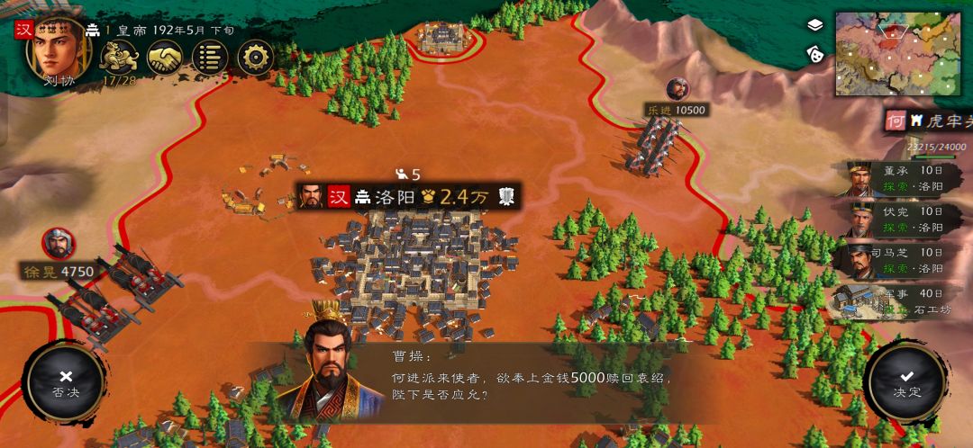 至于虎牢关和函谷关由于有皇埔嵩的存在就没必要守了,浪费兵力容易被逐个击破。箭塔也没必要建了,何进官职个个都是一万兵,前期没科技支持还不够人家摸一下的,浪费钱。两关开局有四千金,所有资源全运回洛阳憋三河骑士。
