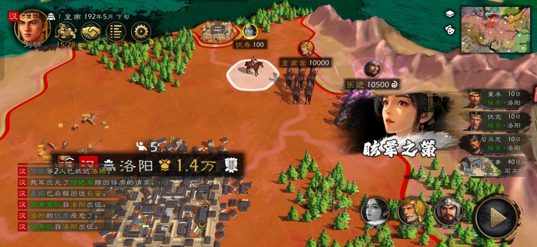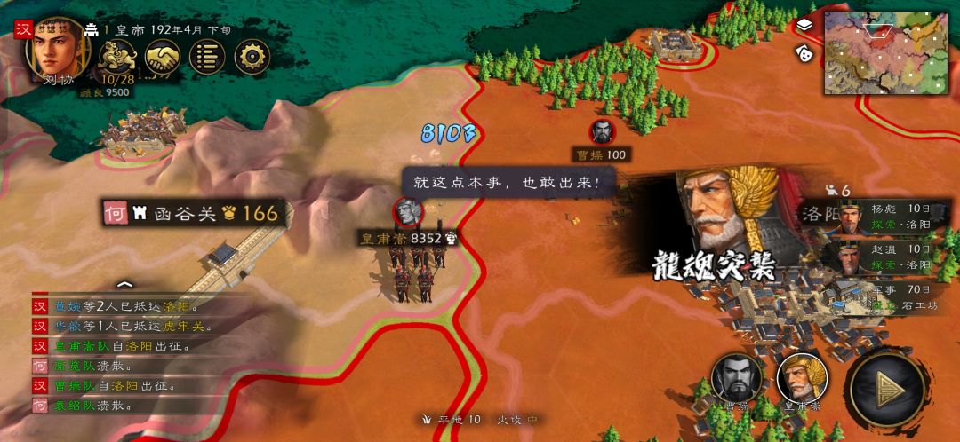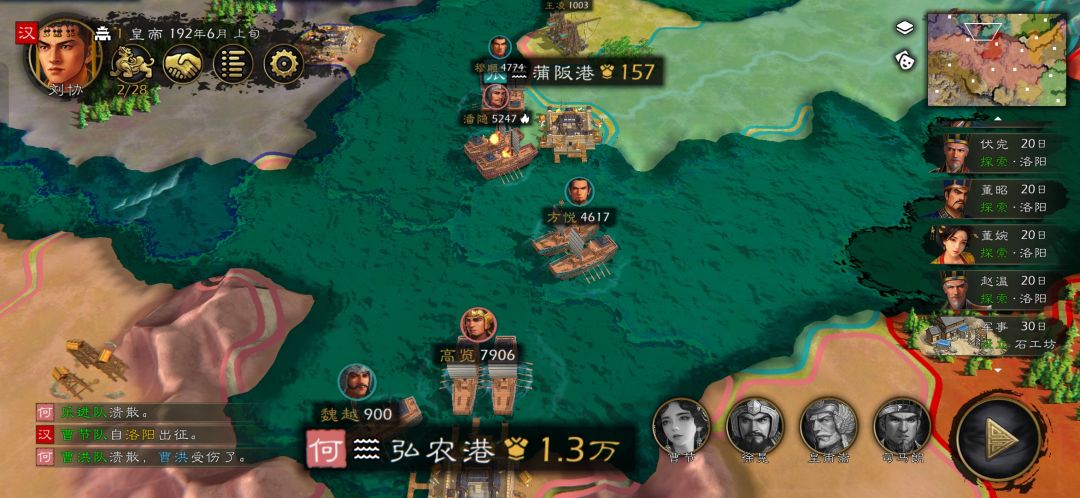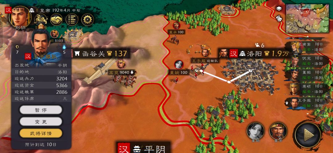 新版居然有平阴小剧情,爆了一下资源。赶紧派人去运回洛阳。此时何进先头部队已经杀奔洛阳,情急之下只能翻一下有控制的武将。三位皇后技能都挺不错,疲惫之策直接让对面干瞪眼。