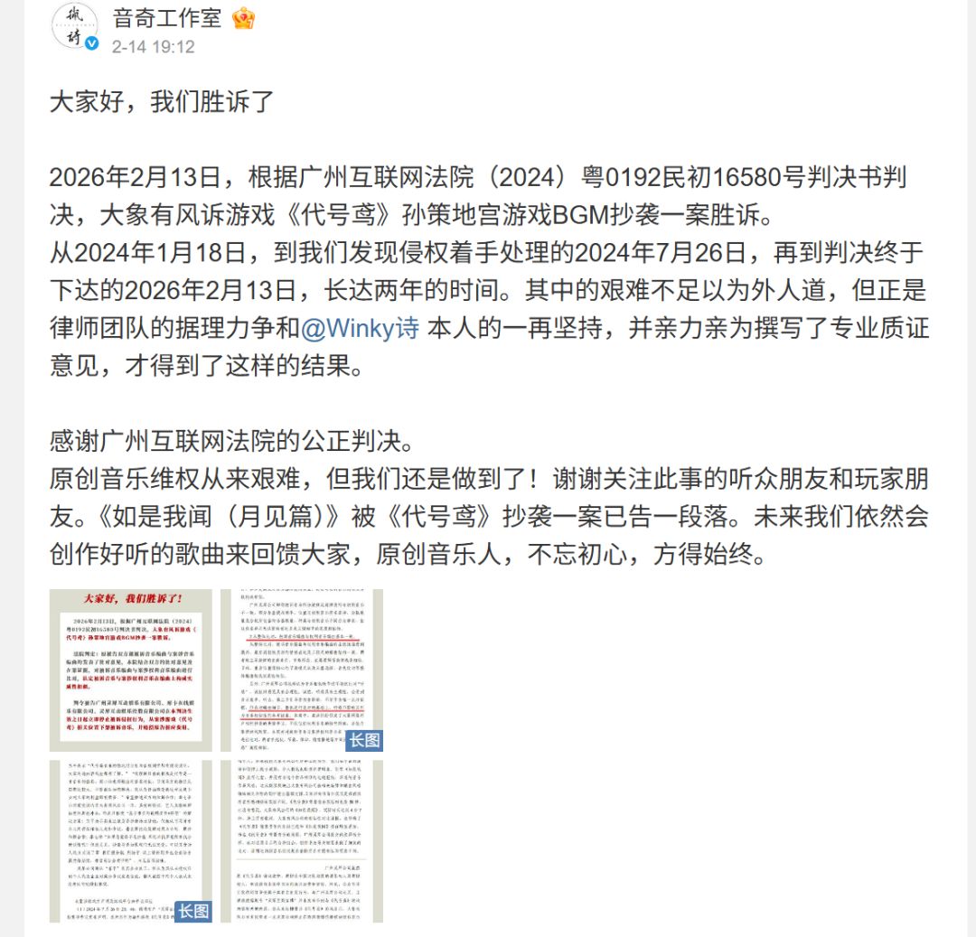 《代号鸢》音乐抄袭案胜诉,广州互联网法院判令下架侵权BGM