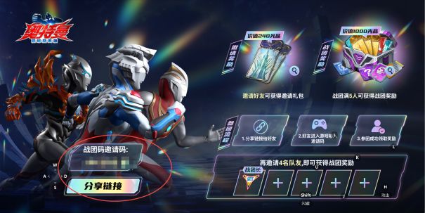 2.邀请方式:点击活动页面“分享链接”按钮,可将队伍码及活动链接分享给游戏外部好友,好友需在游戏内活动界面填写该队伍码,即可加入你的队伍。注意:好友需为有效队员才可算作新队员