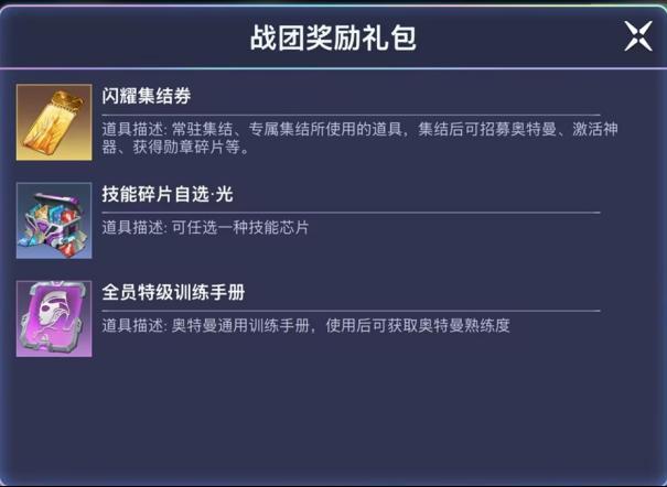 价值1000光晶的成团奖励(闪耀集结券*5、技能碎片自选·光*10、全员特级训练手册*10)