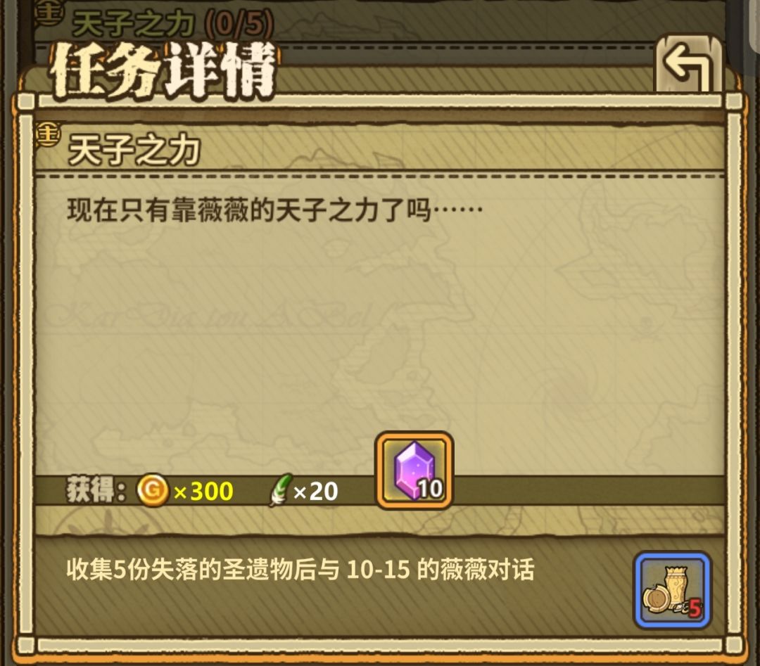 开幕雷击。我们需要收集5个失落圣遗物,前面提醒过,我们可以开启背包里的蓝色宝箱了
