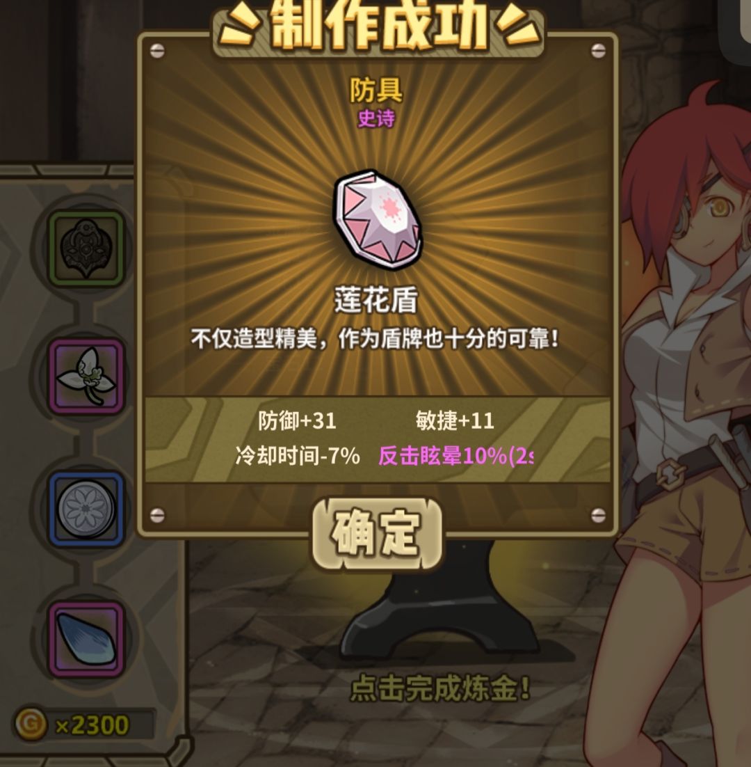 这里没有多少材料,4出了2,结果可以接受。属性再差也比镜子强