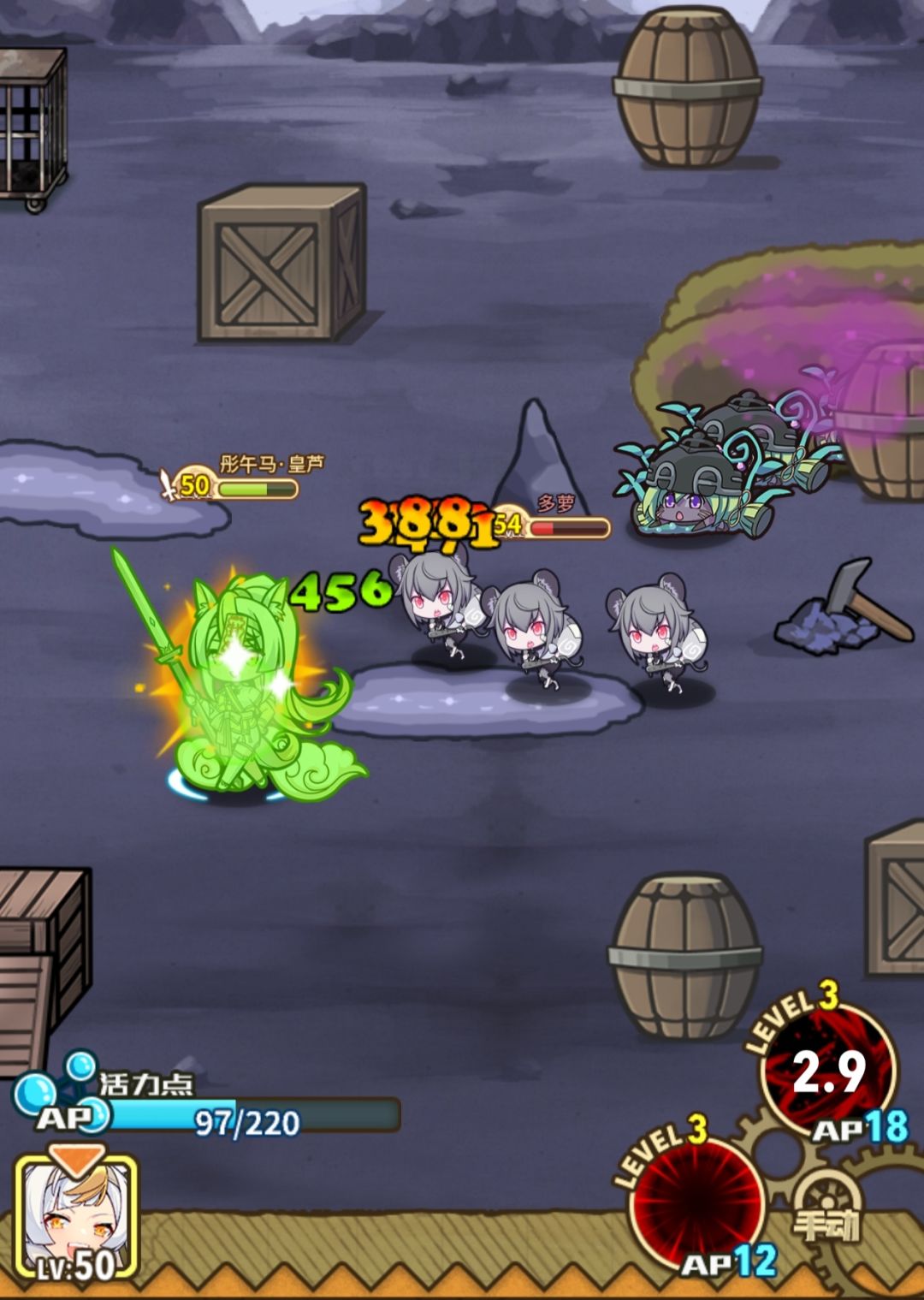主力达到50级是通关的标杆。在刷了400多颗碎片之后,勉强突破了50级,连潜能都没来得及点满,就再回去尝试了