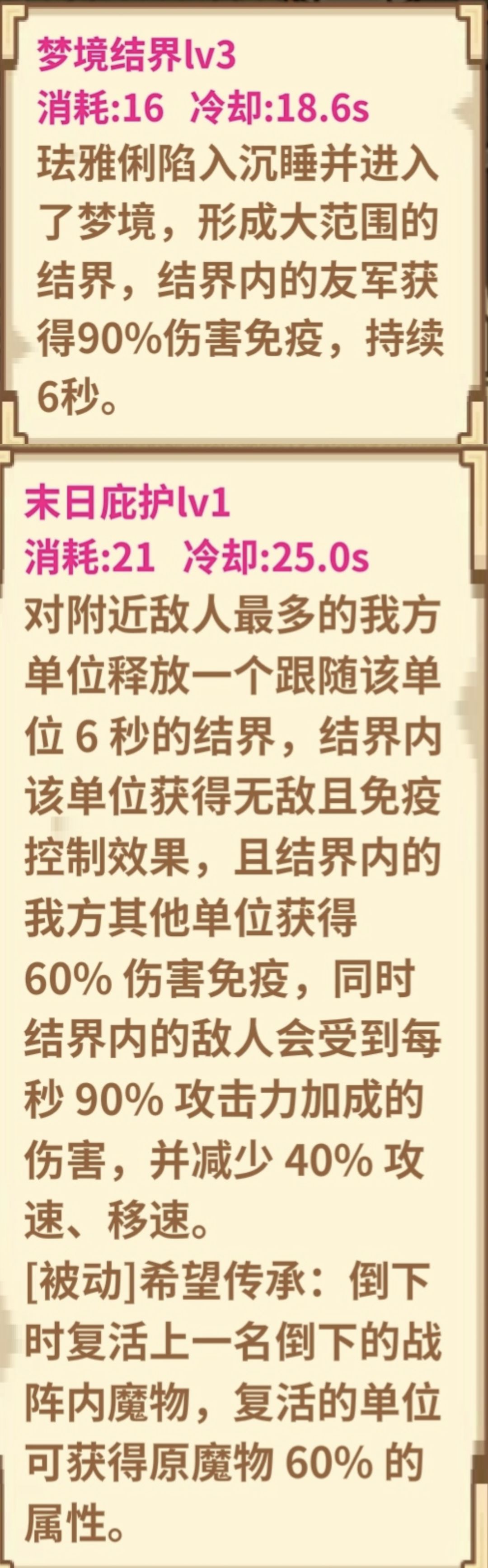 我们的生存面集中在控制&治疗,缺少免伤,抗风险能力弱,尤其怕遭遇免控怪物。因此引入丽芙莎茵,简单介绍一下