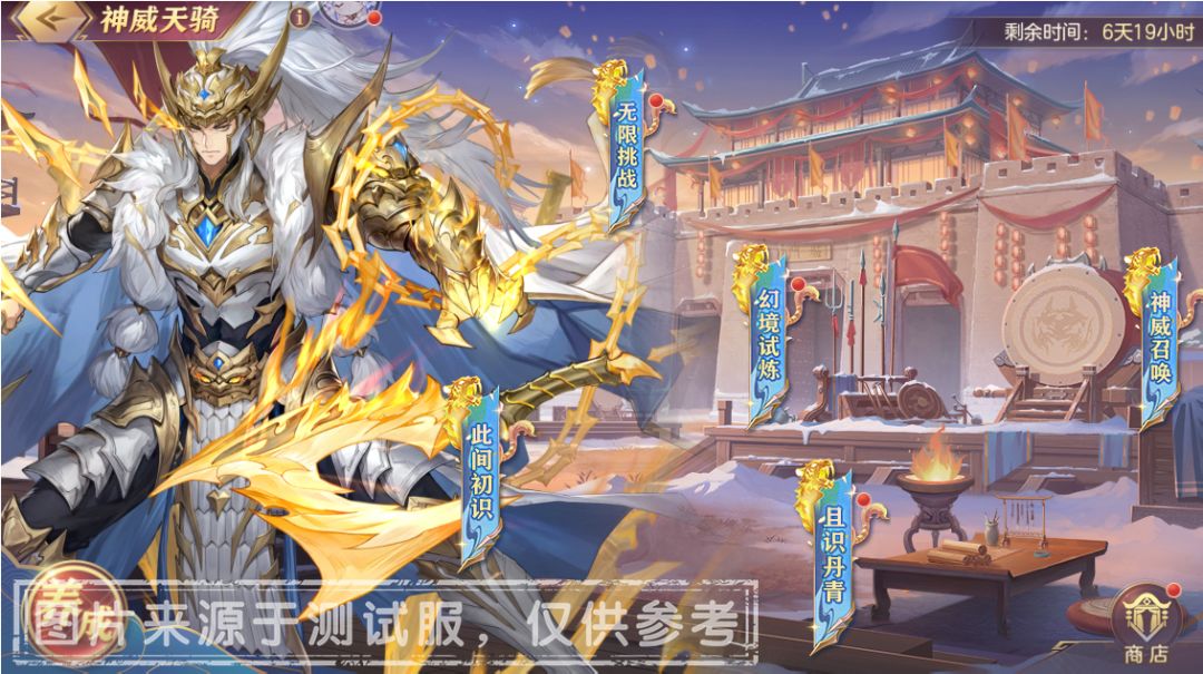 1、【神威天骑】活动中的【养成】模块加成,仅对活动内(包含无限挑战与幻境试炼)的玩法有加成效果,对活动外模块无效果。该加成效果将在活动结束后重置。