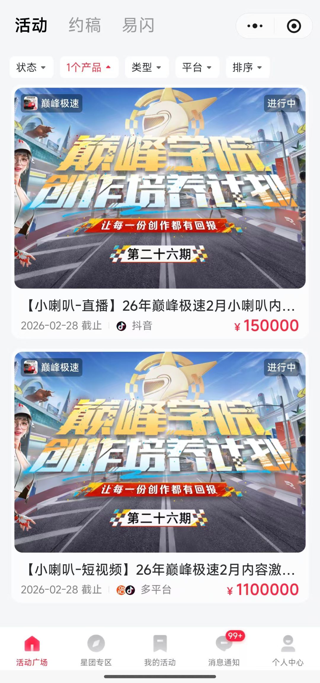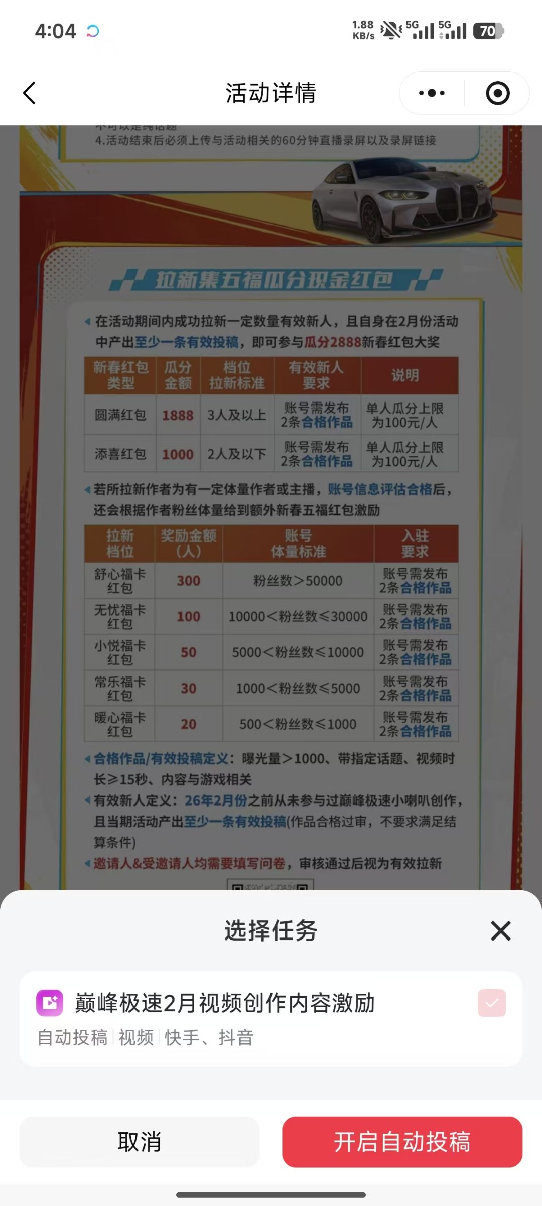 2、点击【26年巅峰极速2月内容激励活动】查看任务详情