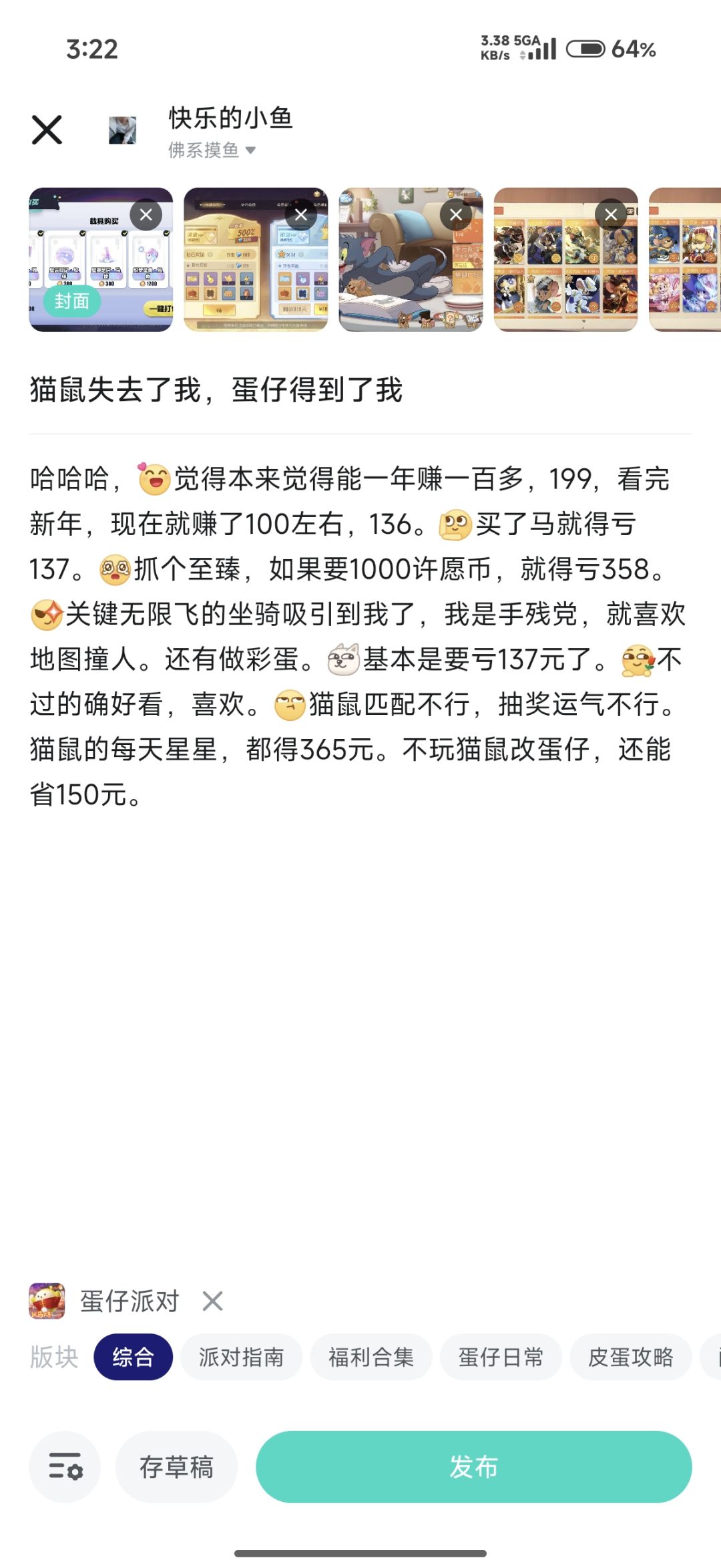 不过失败了,好像也是,猫和老鼠失去的我,蛋仔得到了我。