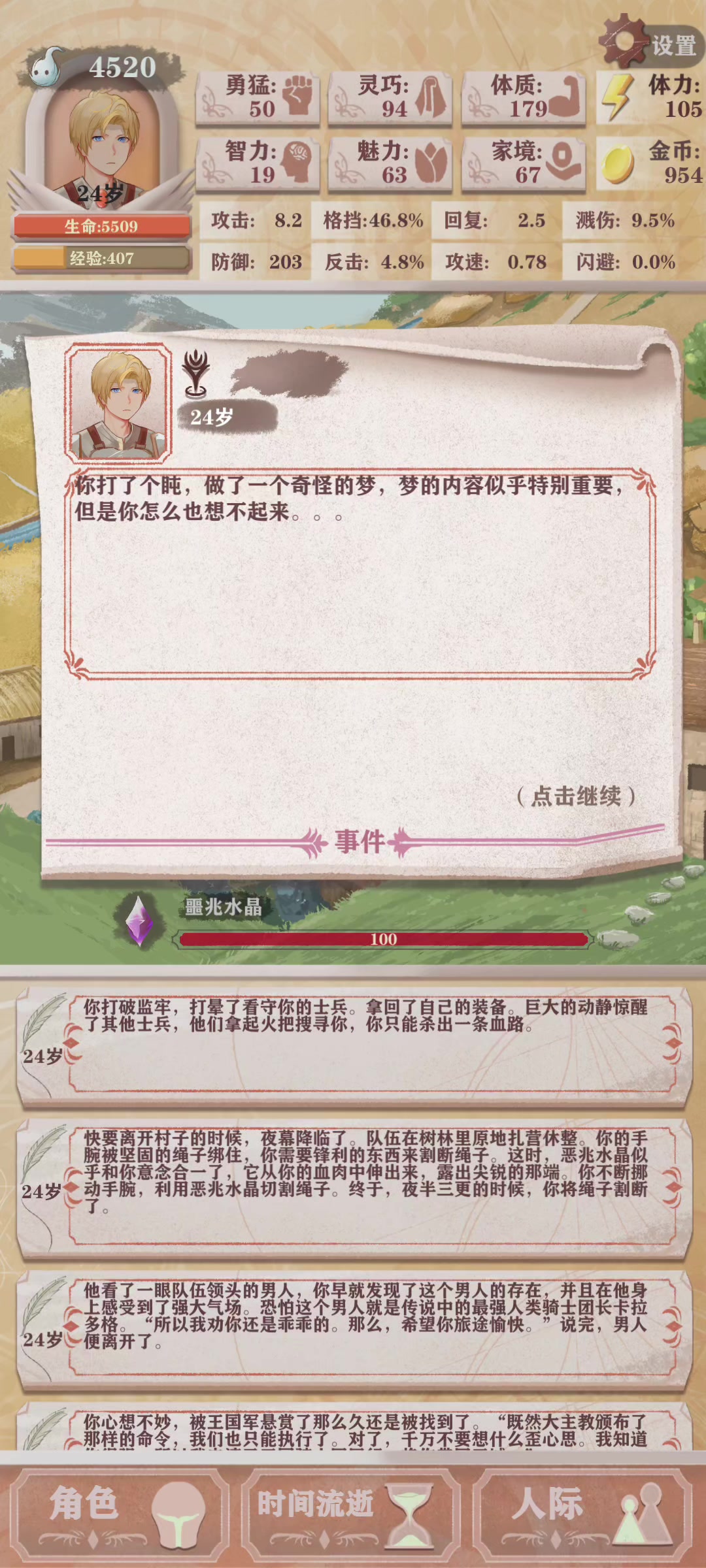 恶兆四刷装备和神器,最后一个回合sl路线,一度以为过不去了,结果最后一次出现了路线只碰到两个迟缓两眷属,所以尽管我犯了不少错误,没学嘲讽,夏应该300好感,但是在血牛神力下依旧过了魔王,恶兆四死逃九去其七,从结果上看不屈意志这个天赋没发挥上作用。但是个人的不屈意志,终究把0环血牛再往前推了一步